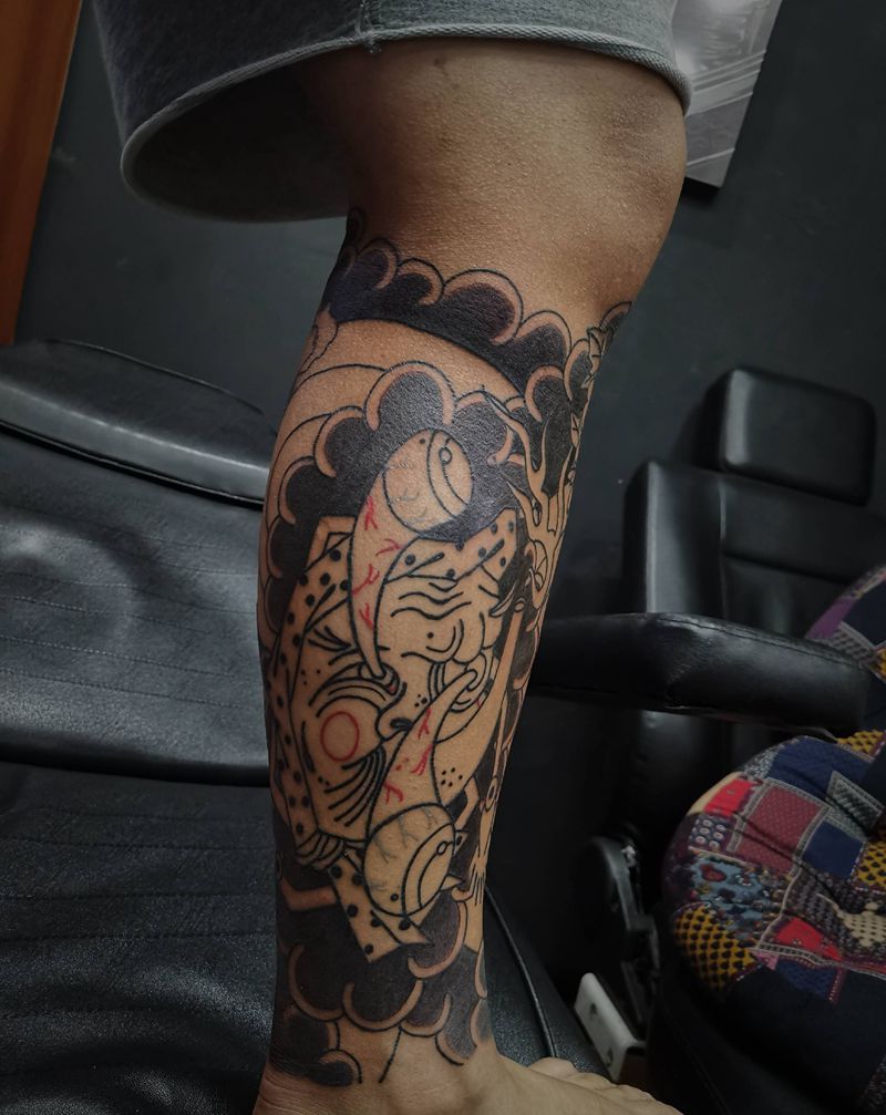 当前位置: 首页 >贵州省贵阳市纹身店-贵阳魔魂刺青纹身图案>包小腿未完成纹身图片_老传统纹身图案