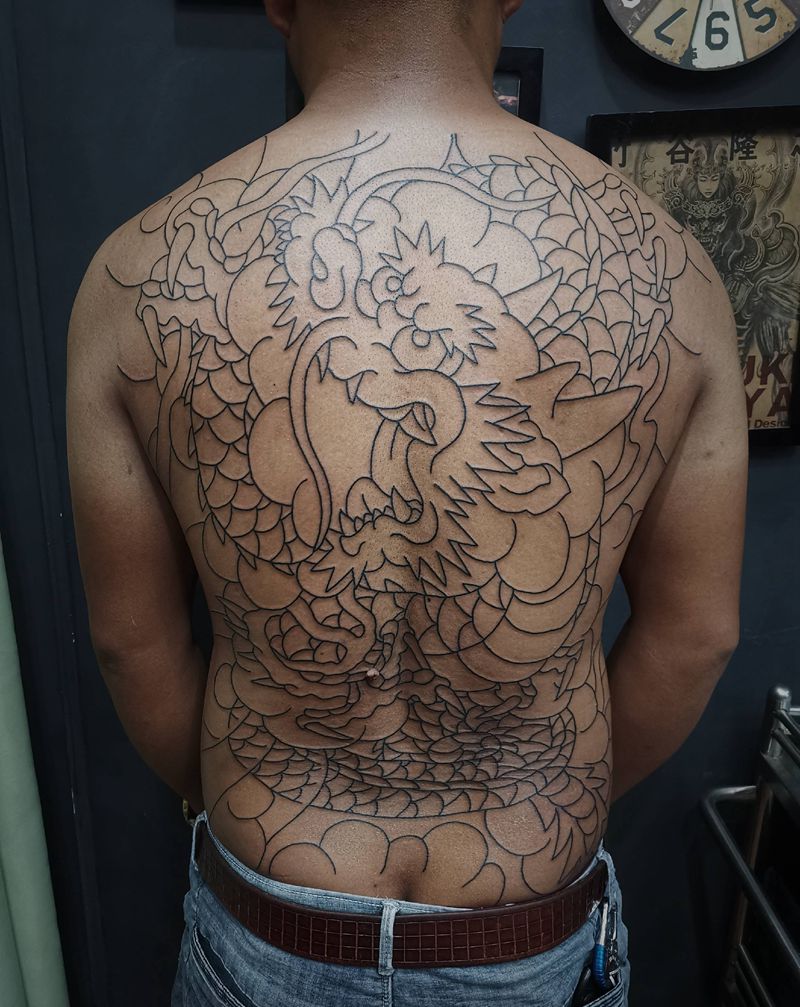 当前位置: 首页 >贵州省贵阳市纹身店-贵阳魔魂刺青纹身图案>满背未完成纹身图片_老传统纹身图案
