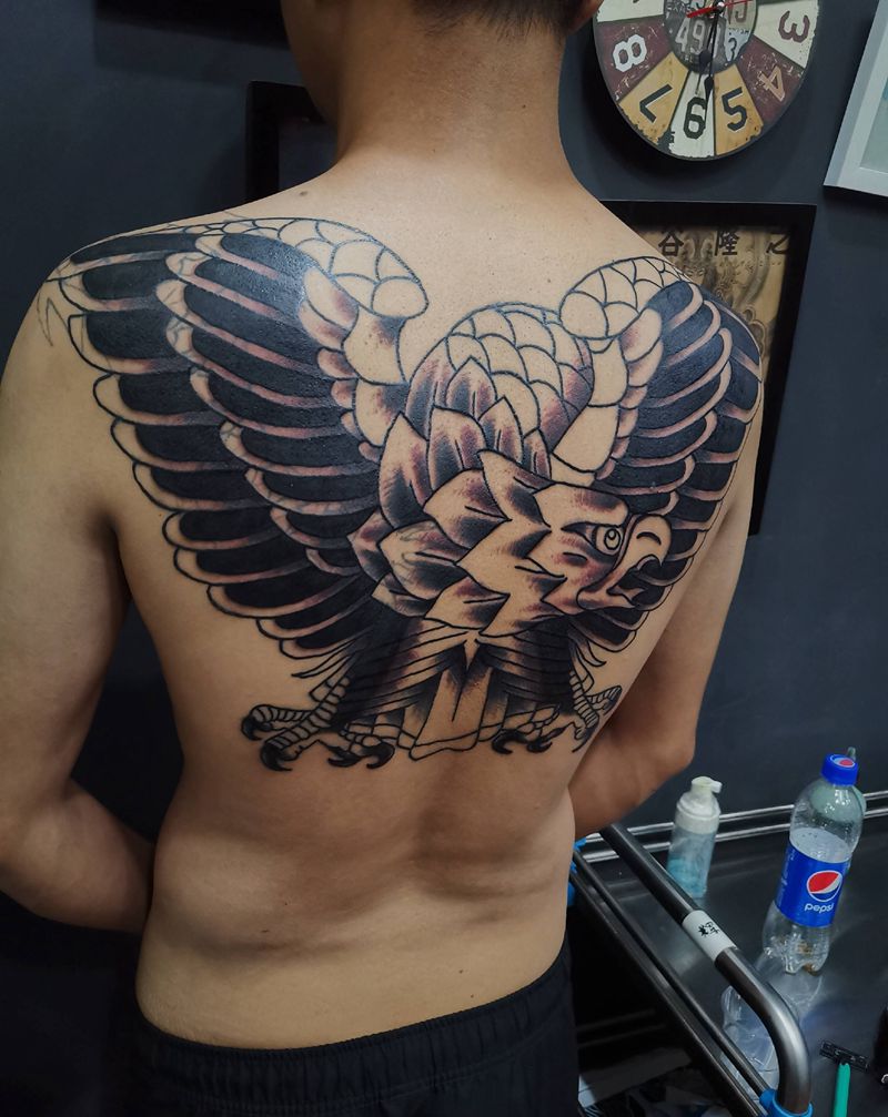 当前位置: 首页 >贵州省贵阳市纹身店-贵阳魔魂刺青纹身图案>老鹰未完成下次继续纹身图片_Old School纹身图案