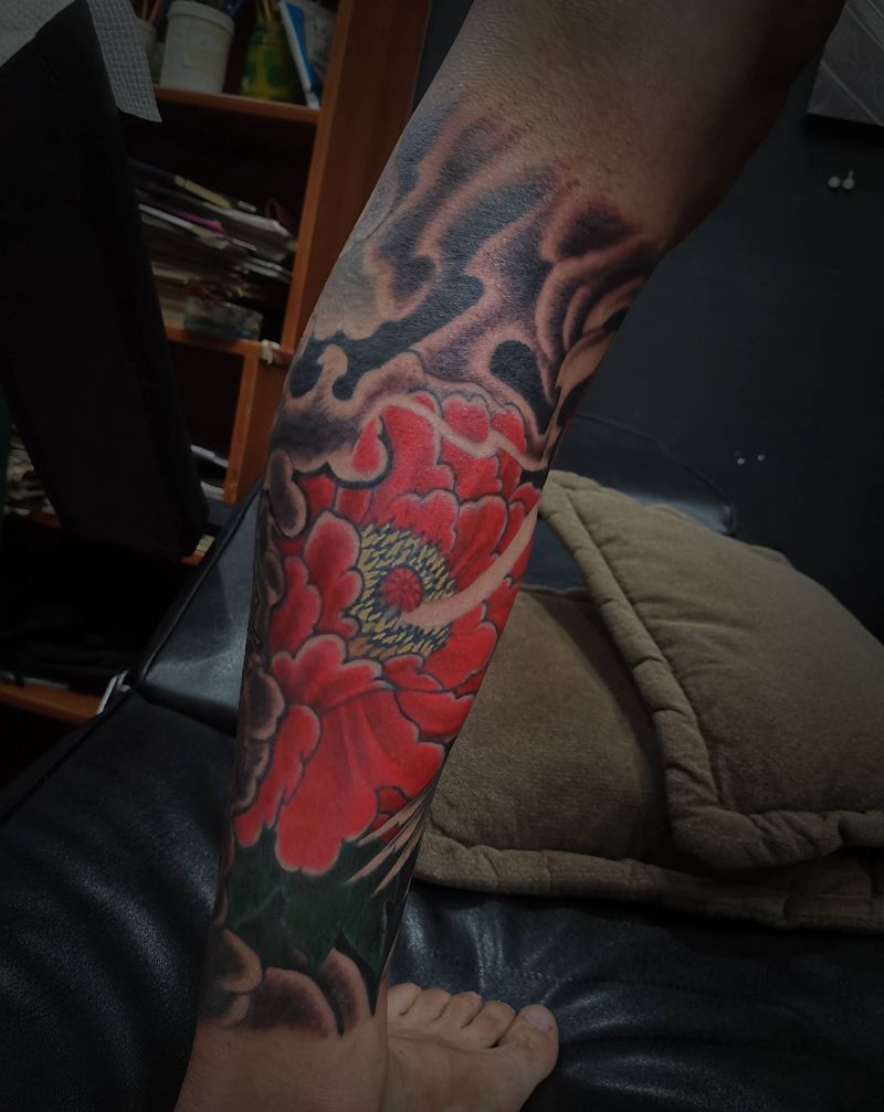 • T网红王老大花腿龙纹身图片_腿部新传统纹身图案