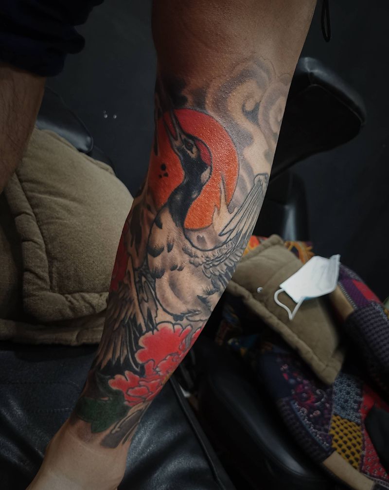 当前位置: 首页 >贵州省贵阳市纹身店-贵阳魔魂刺青纹身图案>包小腿丹顶鹤纹身图片_新传统纹身图案