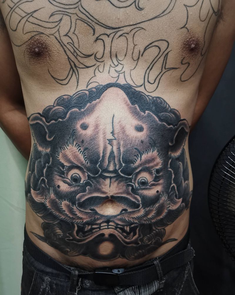 当前位置: 首页 >贵州省贵阳市纹身店-贵阳魔魂刺青纹身图案>唐狮纹身图片_老传统纹身图案