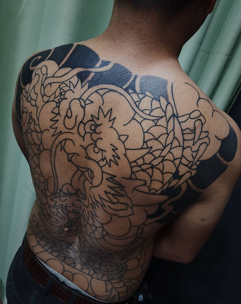 • T云龙九郎纹身图片_背部老传统云龙九郎纹身图案