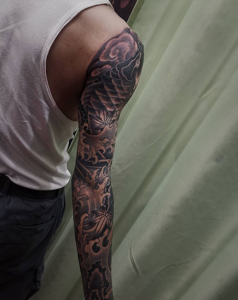 当前位置: 首页 >贵州省贵阳市纹身店-贵阳魔魂刺青纹身图案>新传统花臂未完成纹身图片_新传统纹身图案