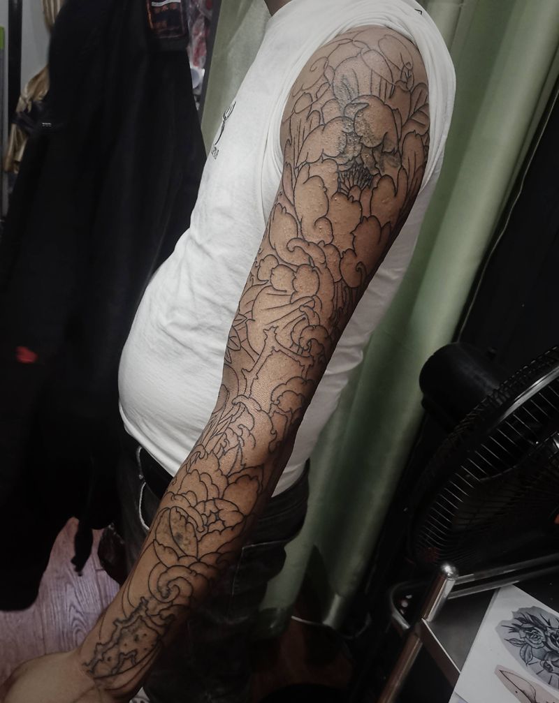 当前位置: 首页 >贵州省贵阳市纹身店-贵阳魔魂刺青纹身图案>花臂未完成下次继续纹身图片_新传统纹身图案