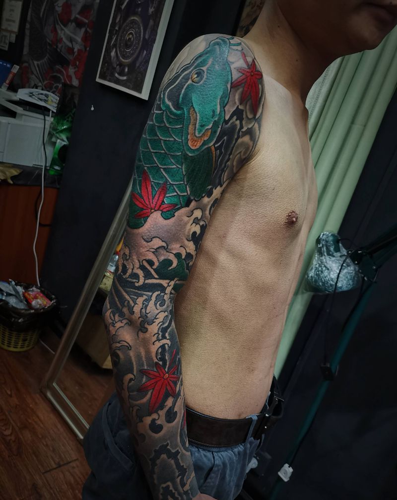 当前位置: 首页 >贵州省贵阳市纹身店-贵阳魔魂刺青纹身图案>新传统花臂纹身图片_新传统纹身图案