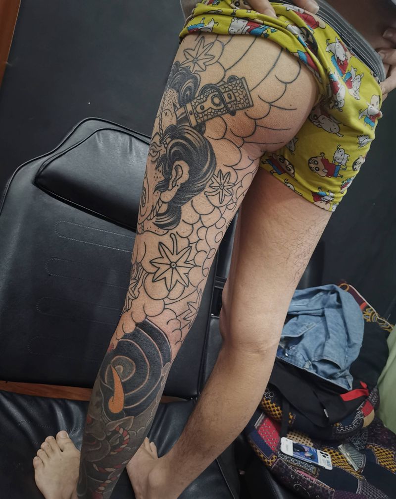 当前位置: 首页 >贵州省贵阳市纹身店-贵阳魔魂刺青纹身图案>包小腿接成花腿未完成下次继续纹身图片_老传统纹身图案