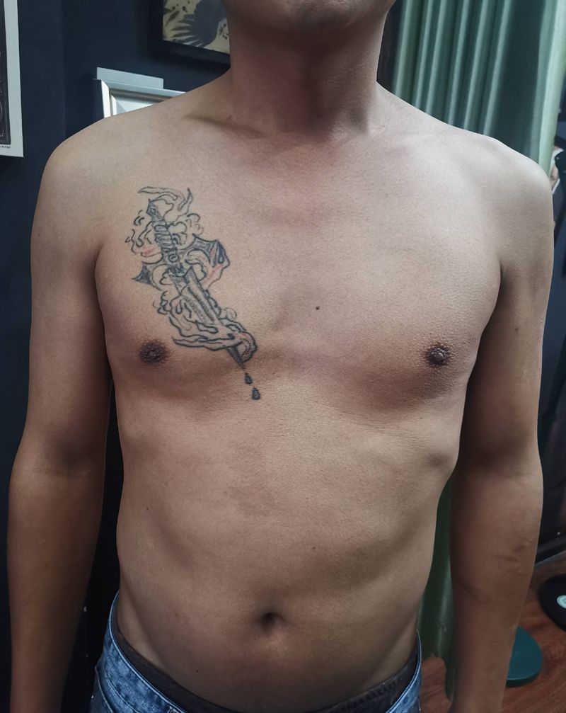 当前位置: 首页 >贵州省贵阳市纹身店-贵阳魔魂刺青纹身图案>花胸遮盖失败纹身未完成纹身图片_新传统纹身图案