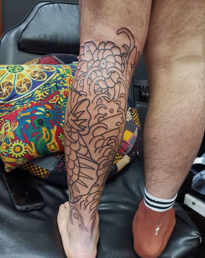 当前位置: 首页 >贵州省贵阳市纹身店-贵阳魔魂刺青纹身图案>包小腿未完成纹身图片_老传统纹身图案