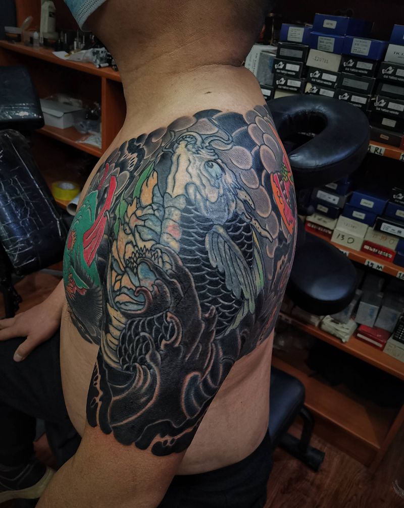 • 纹身吧推荐的披肩图腾半胛纹身图案作品展示