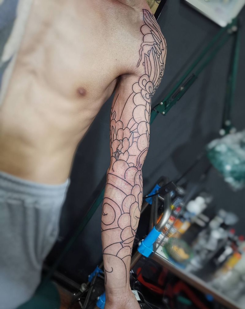 当前位置: 首页 >贵州省贵阳市纹身店-贵阳魔魂刺青纹身图案>麒麟臂未完成纹身图片_老传统纹身图案