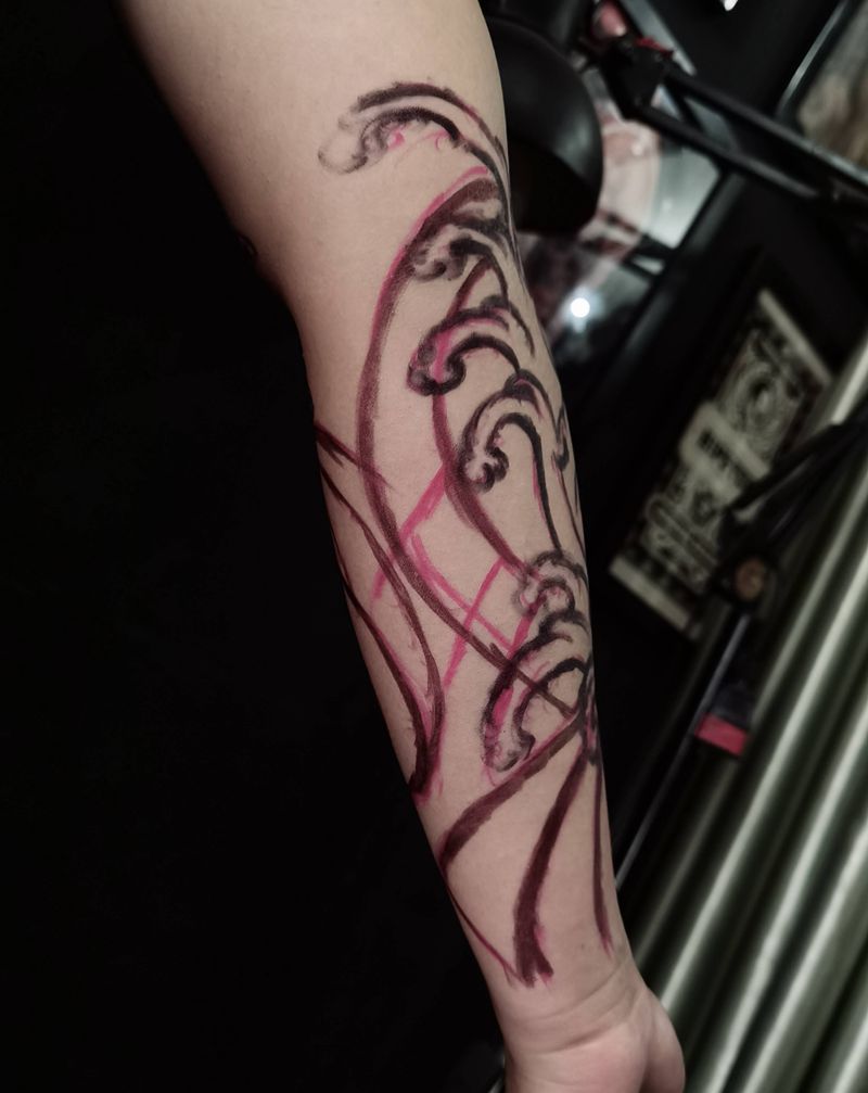 浪包小臂设计纹身图片_手臂新传统纹身图案