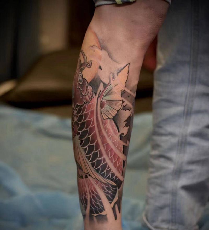 当前位置: 首页 >贵州省贵阳市纹身店-远航TATTOO纹身图案>小腿鲤鱼纹身图片_腿部脚部新传统水彩纹身图案