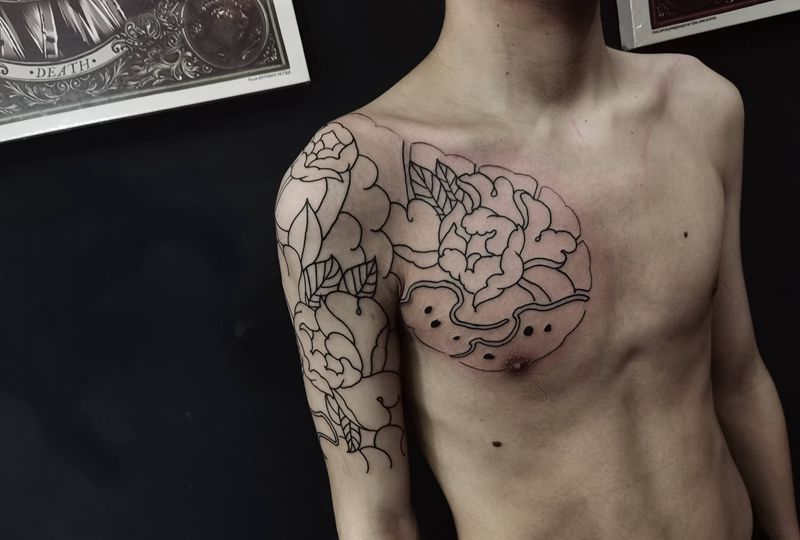 • 女性大花胸纹身_43张霸气漂亮的女性大花胸纹身图案作品