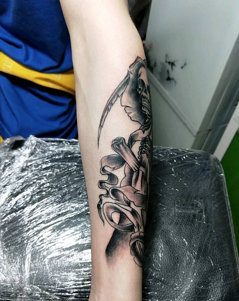 当前位置: 首页 >贵州省遵义市纹身店-踏雪刺青纹身图案>神一般的象征纹身图片_手臂新传统纹身图案