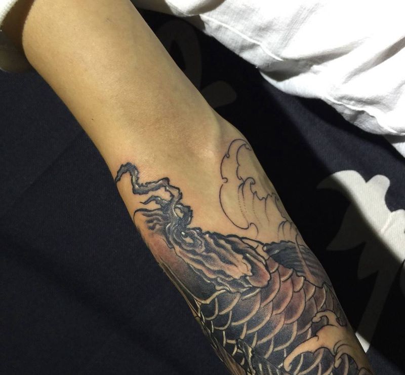 当前位置: 首页 >贵州省遵义市纹身店-墨尘刺青处纹身图案>鱼臂纹身图片_成品手臂传统动物纹身图案