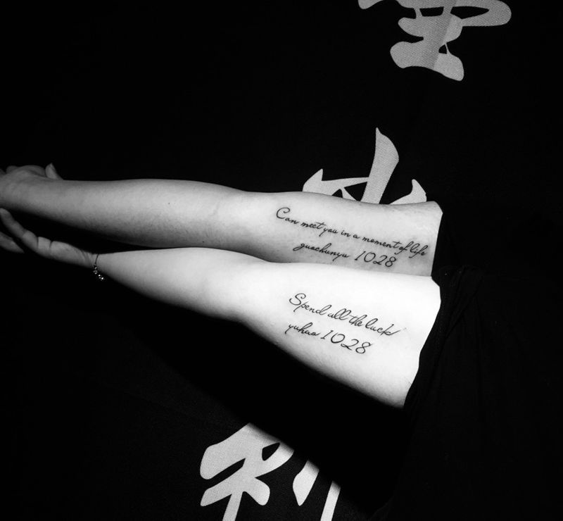 当前位置: 首页 >贵州省遵义市纹身店-墨尘刺青处纹身图案>情侣纹身纹身图片_成品清新情侣字符手臂原创纹身图案
