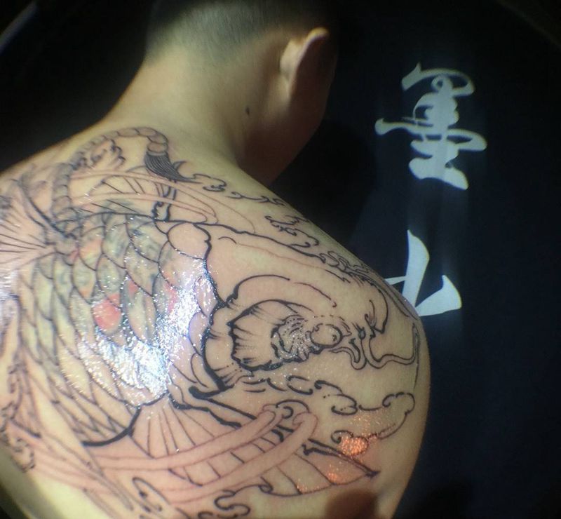 当前位置: 首页 >贵州省遵义市纹身店-墨尘刺青处纹身图案>遮盖未完纹身图片_成品背部传统动物纹身图案