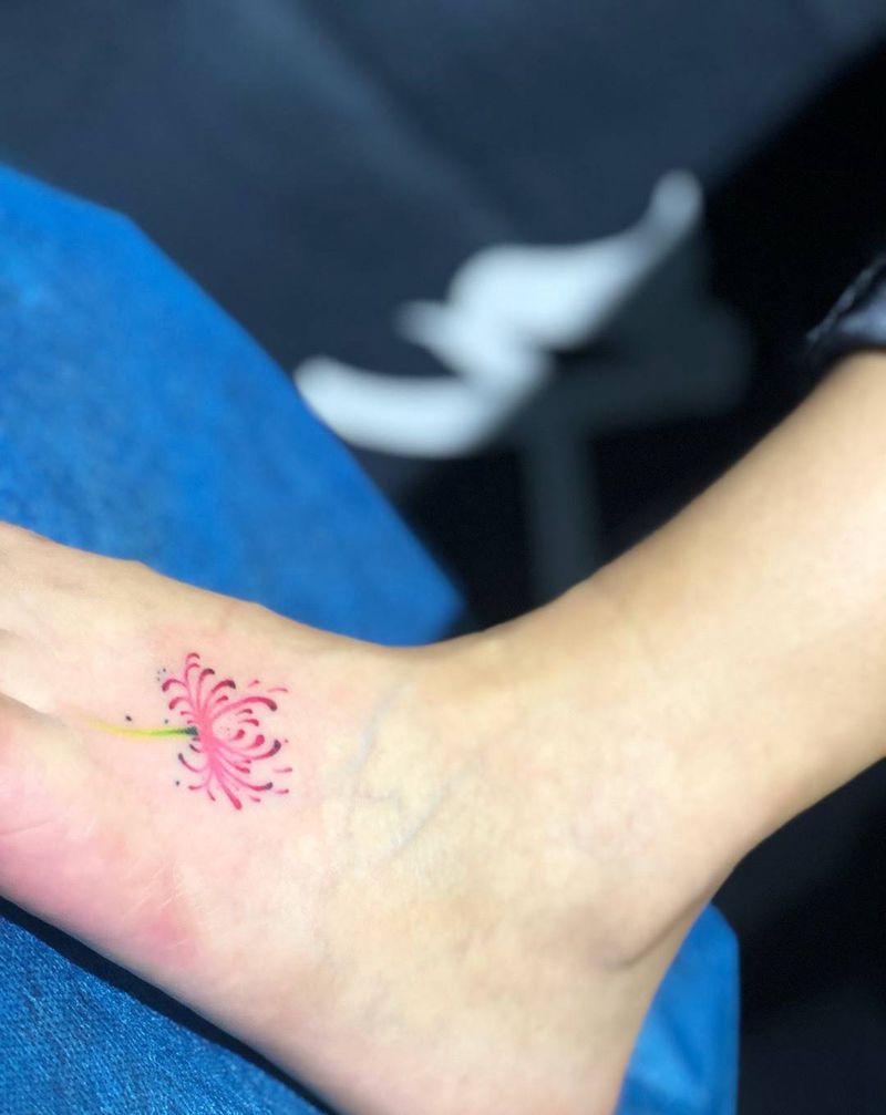 彼岸花纹身图片_脚部水彩原创小清新彼岸花纹身图案