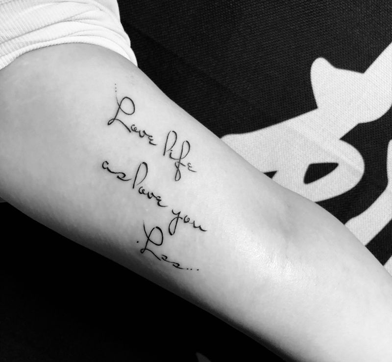 当前位置: 首页 >贵州省遵义市纹身店-墨尘刺青处纹身图案>Lovers tattoo纹身图片_手臂花体字纹身图案