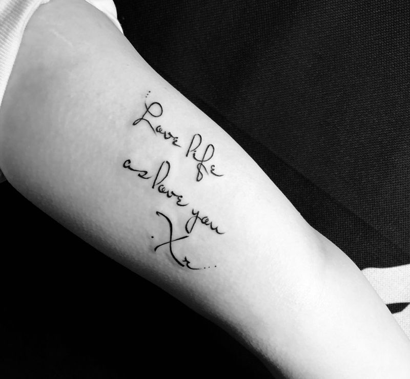 当前位置: 首页 >贵州省遵义市纹身店-墨尘刺青处纹身图案>Lovers tattoo纹身图片_手臂花体字纹身图案