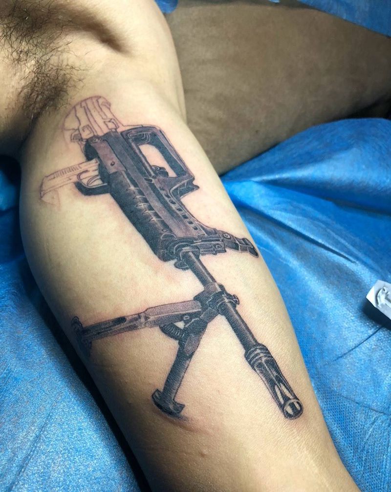 九五式5.8毫米自动轻机枪纹身图片_手臂欧美写实枪械纹身图案