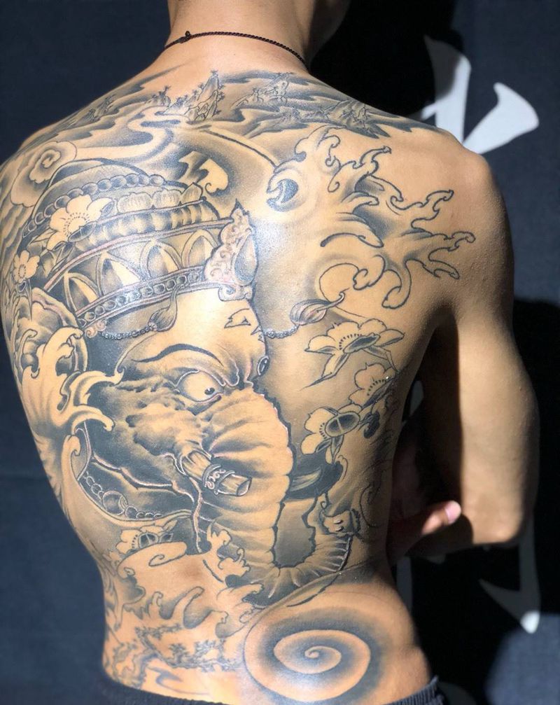 满背象神纹身图片_成品背部传统鬼神宗教纹身图案