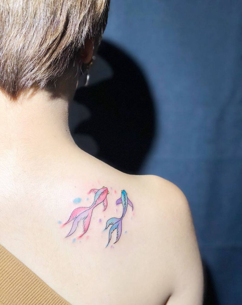 水彩纹身图片_肩部手臂水彩小清新纹身图案
