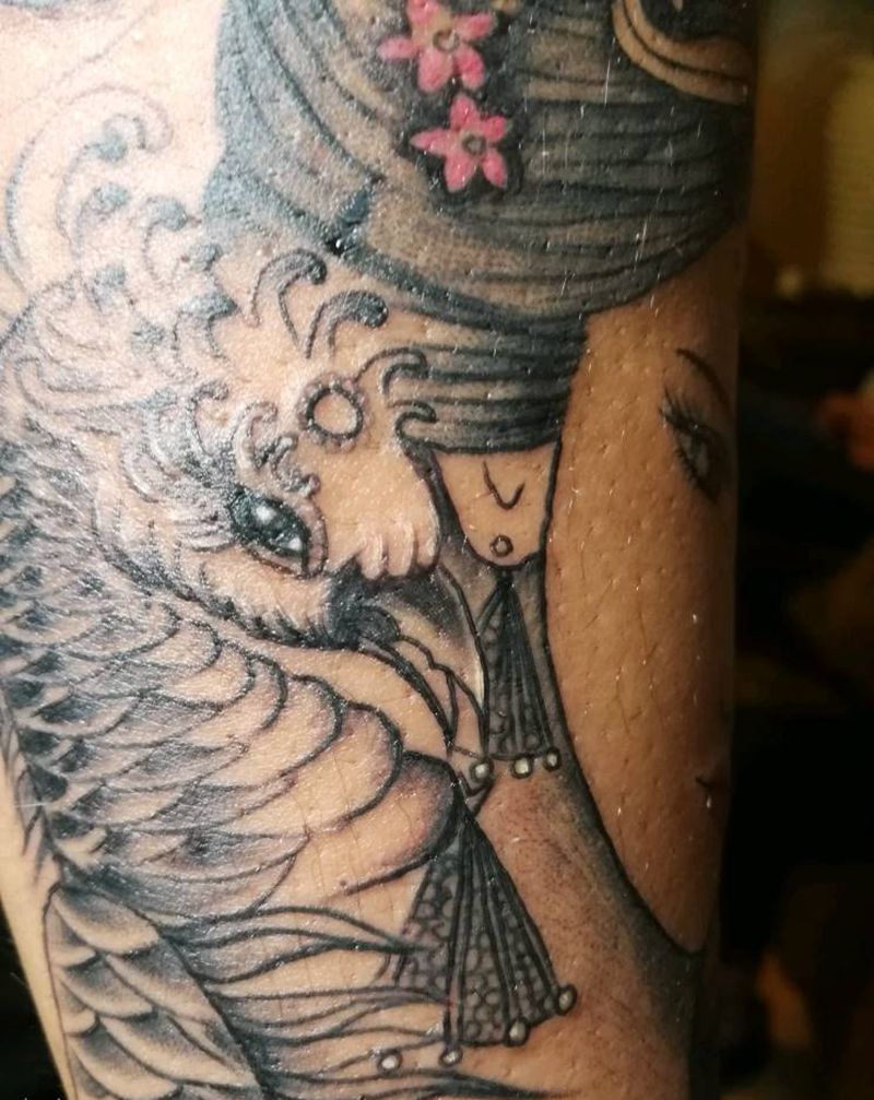 • T网红王老大花腿龙纹身图片_腿部新传统纹身图案