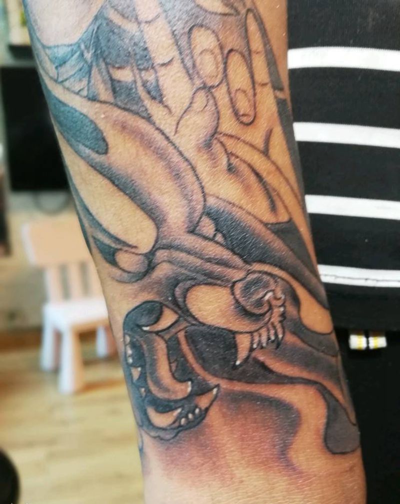 • T网红王老大花腿龙纹身图片_腿部新传统纹身图案