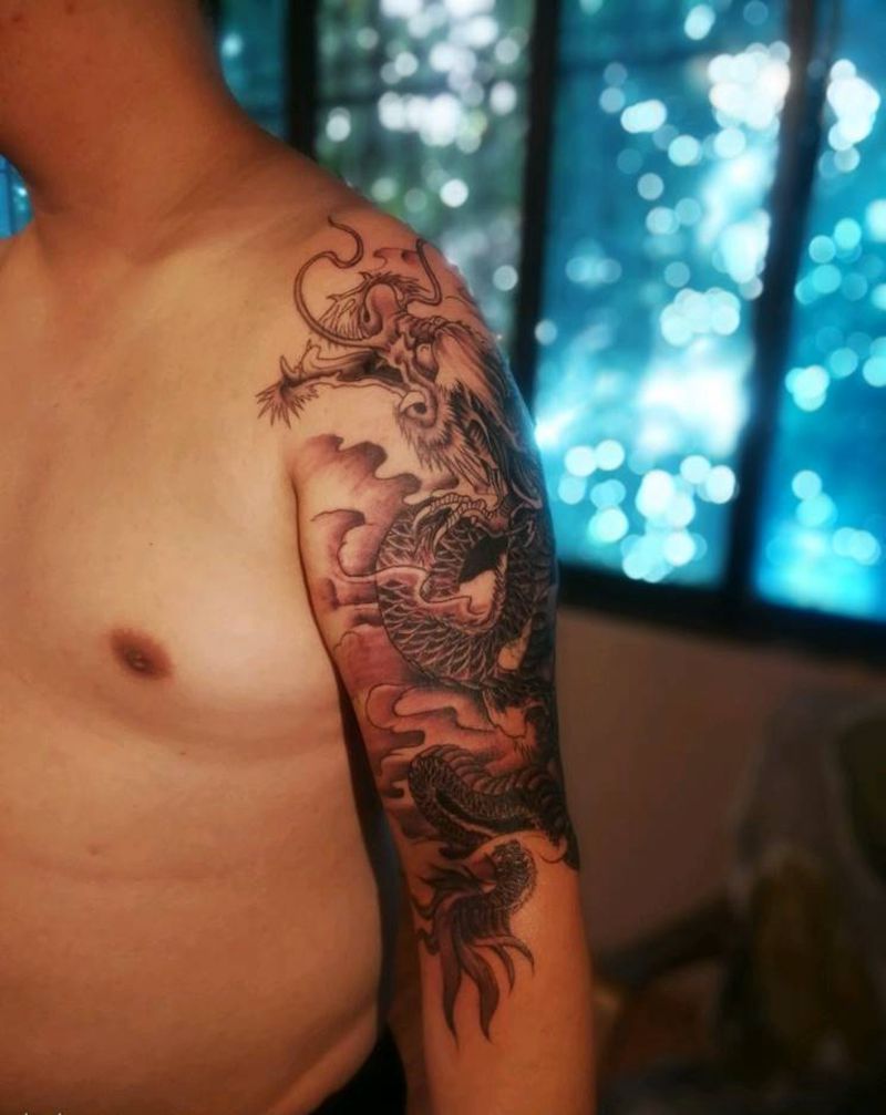 • T网红王老大花腿龙纹身图片_腿部新传统纹身图案