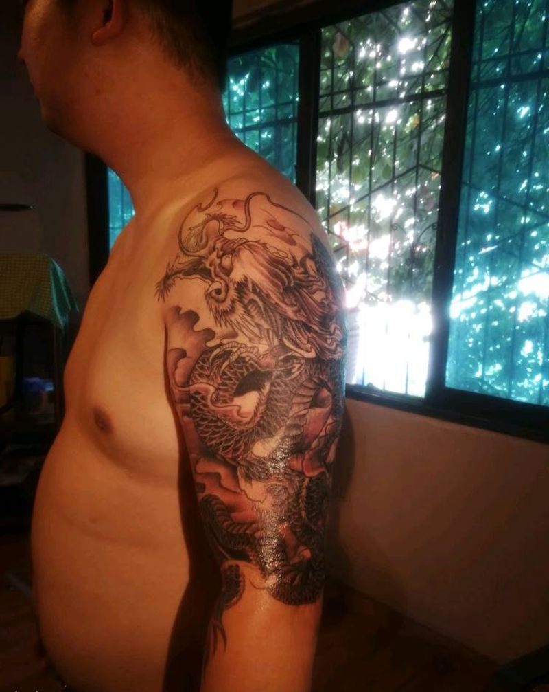 • T网红王老大花腿龙纹身图片_腿部新传统纹身图案