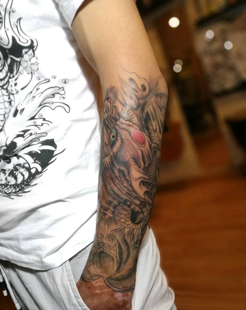 • T网红王老大花腿龙纹身图片_腿部新传统纹身图案