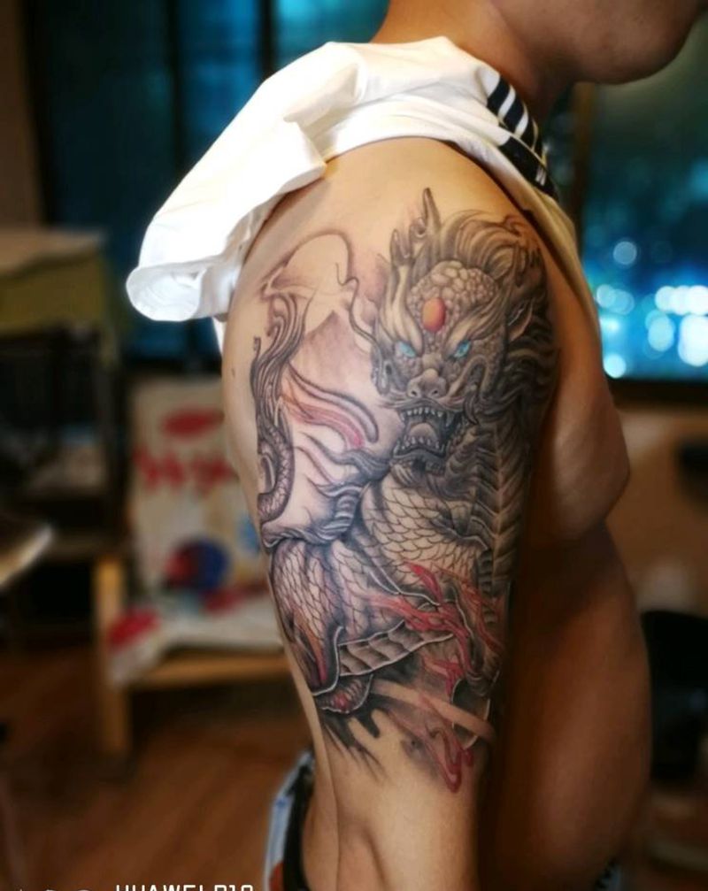 • T网红王老大花腿龙纹身图片_腿部新传统纹身图案