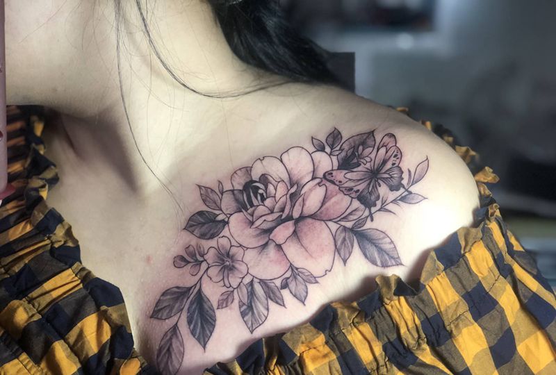 • 女性大花胸纹身_43张霸气漂亮的女性大花胸纹身图案作品