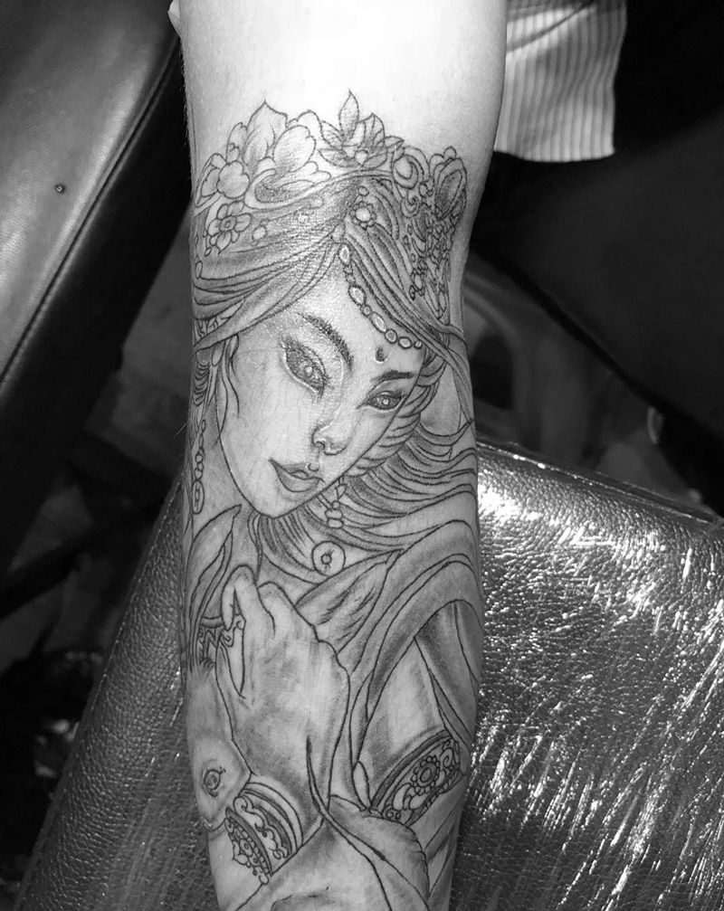 新艺妓纹身图片_成品手臂传统人物动物植物纹身图案