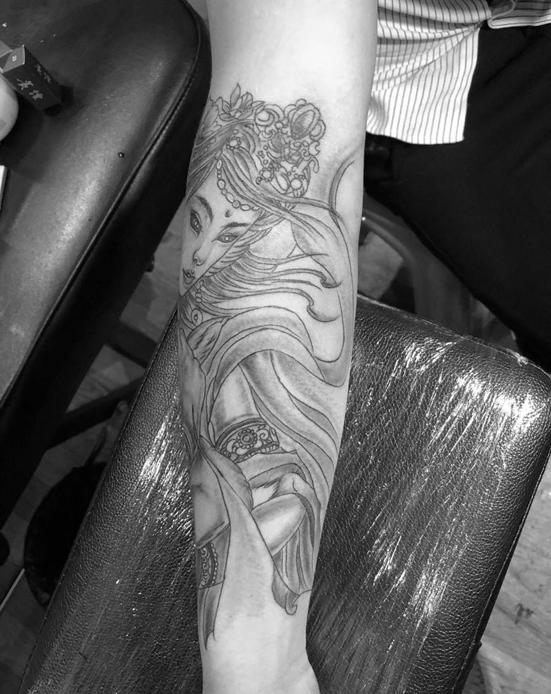 当前位置: 首页 >贵州省遵义市纹身店-久刺青纹身图案>新艺妓纹身图片_成品手臂传统人物动物植物纹身图案