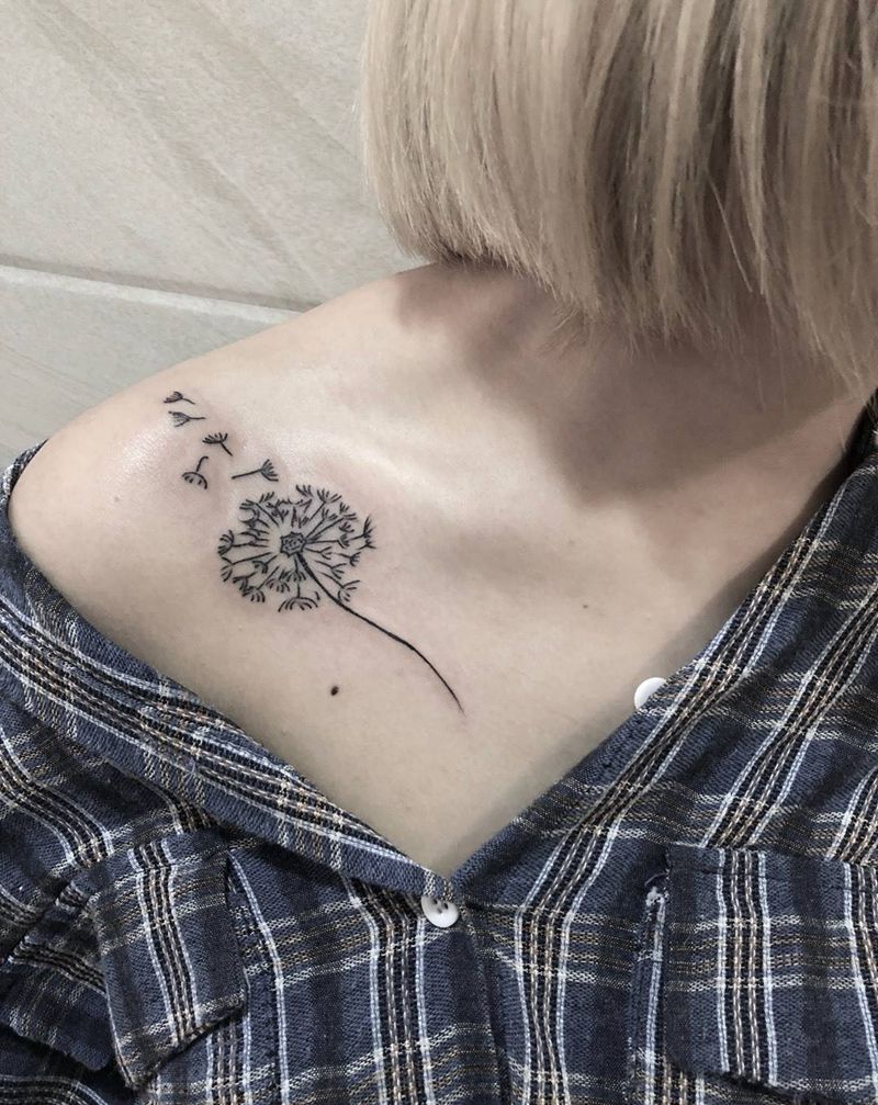 当前位置: 首页 >贵州省遵义市纹身店-久刺青纹身图案>蒲公英纹身图片_成品胸部清新植物纹身图案