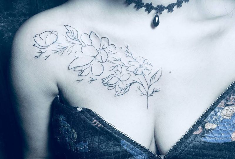 • 女性大花胸纹身_43张霸气漂亮的女性大花胸纹身图案作品