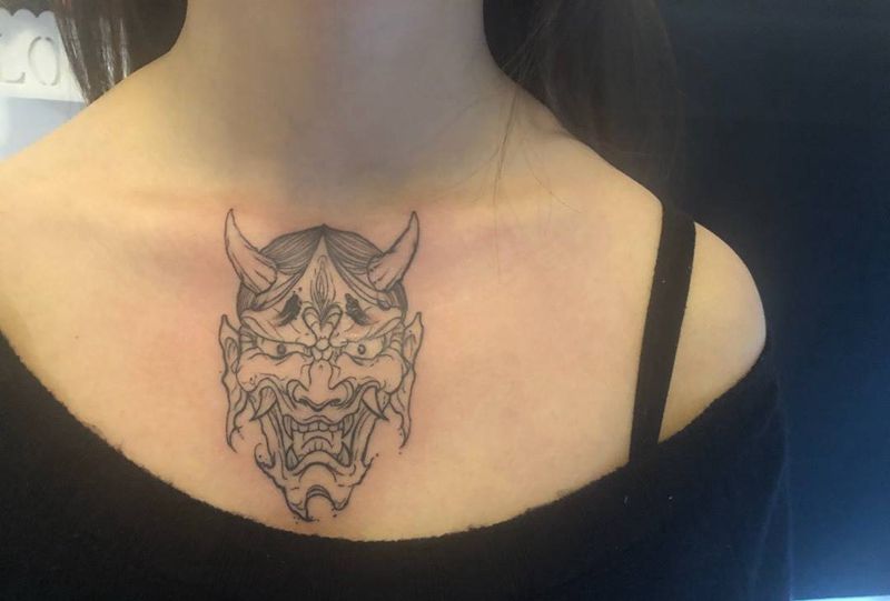 般若纹身图片_胸部新传统纹身图案