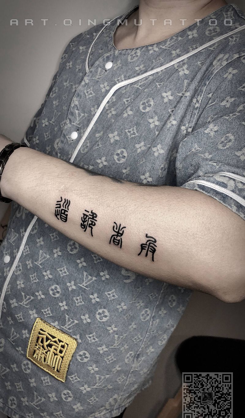 当前位置: 首页 >贵州省毕节市纹身店-青木刺青処纹身图案>小篆体纹身图片_手臂花体字纹身图案