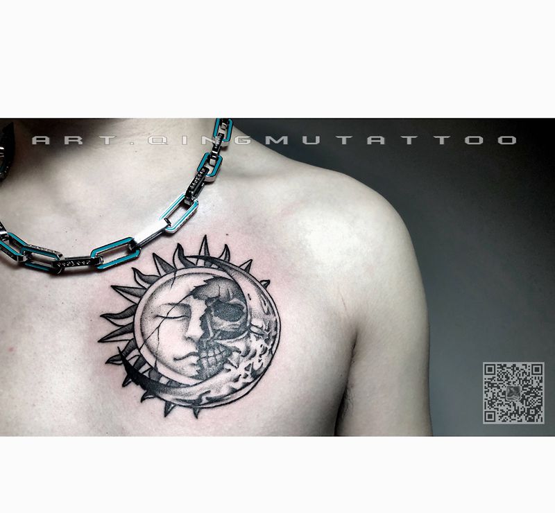 太阳&月亮纹身图片_胸部欧美写实纹身图案