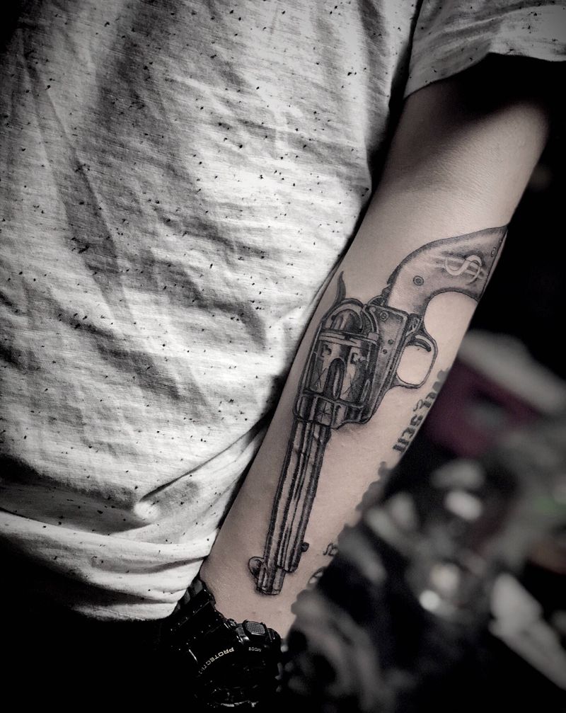 手枪纹身图片_手臂纹身图案