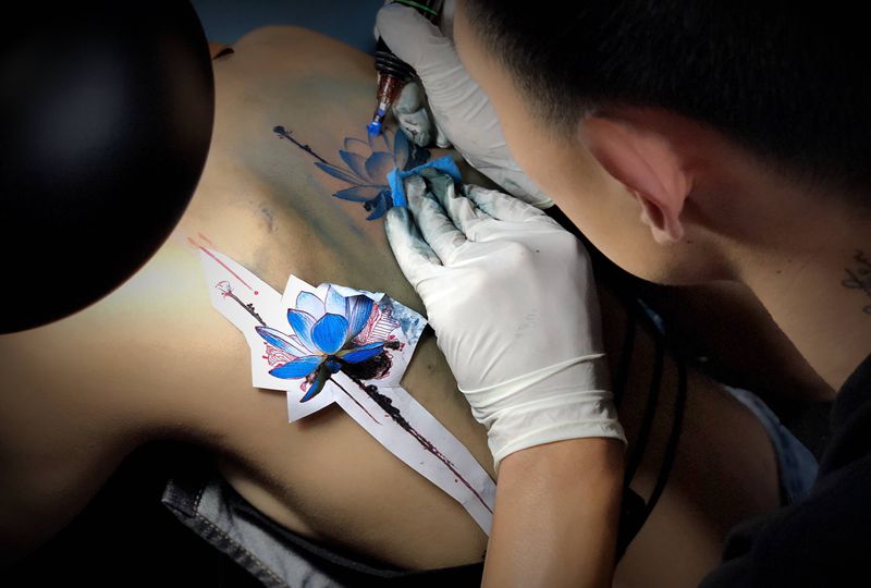 当前位置: 首页 >贵州省毕节市纹身店-青木刺青処纹身图案>莲花纹身图片_背部肩部水彩纹身图案