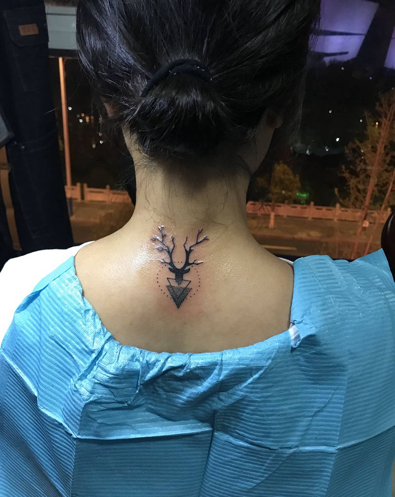 当前位置: 首页 >贵州省毕节市纹身店-青木刺青処纹身图案>鹿纹身图片_颈部几何点刺纹身图案