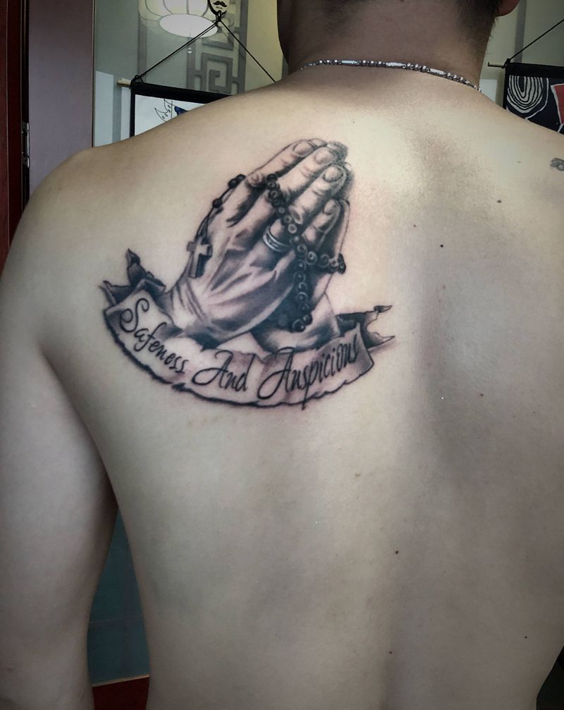 祈祷之手纹身图片_背部欧美写实纹身图案