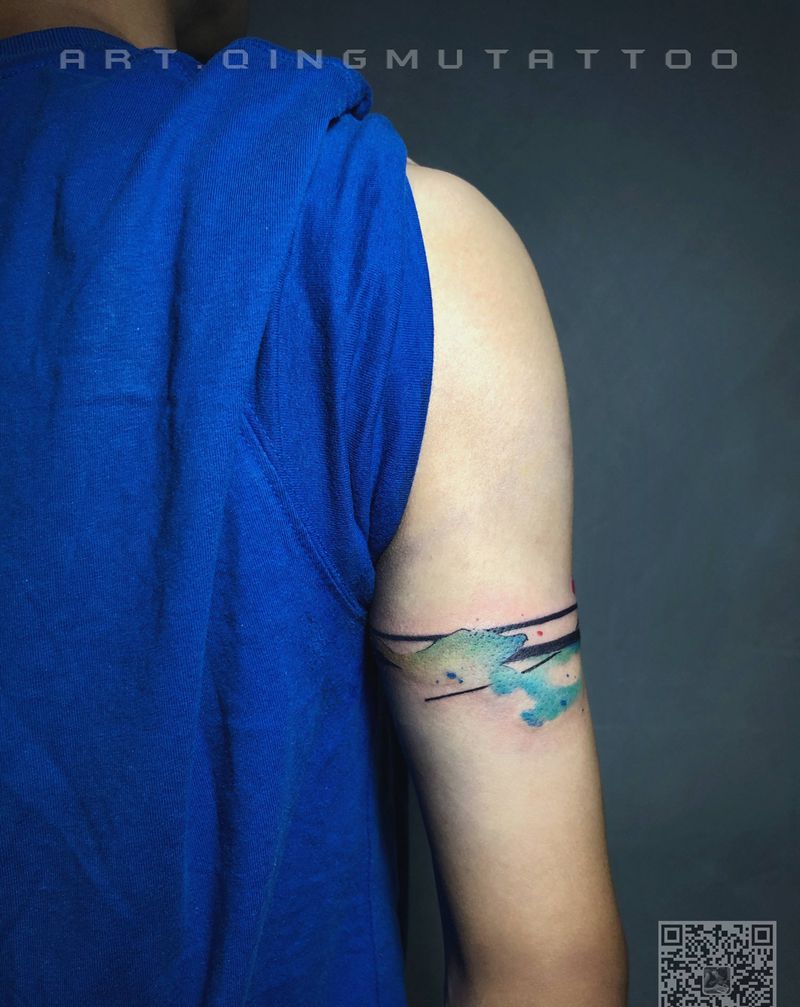 当前位置: 首页 >贵州省毕节市纹身店-青木刺青処纹身图案>几何元素水彩臂环纹身图片_手臂水彩几何纹身图案