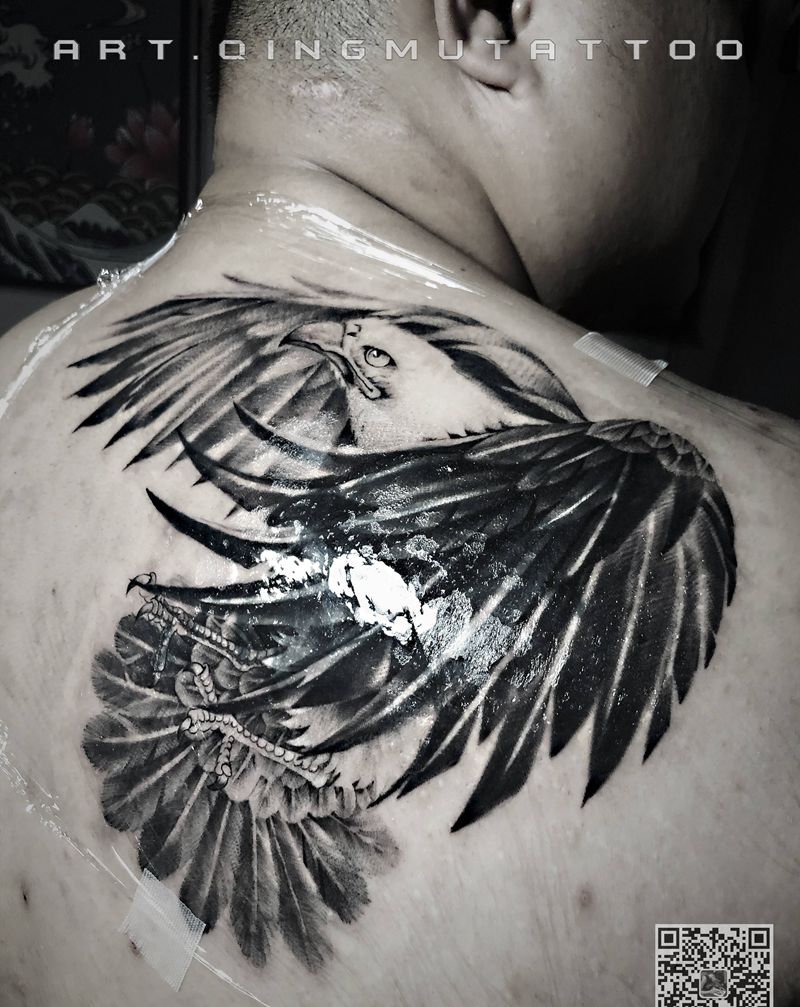 旧纹身遮盖纹身图片_背部欧美写实纹身图案