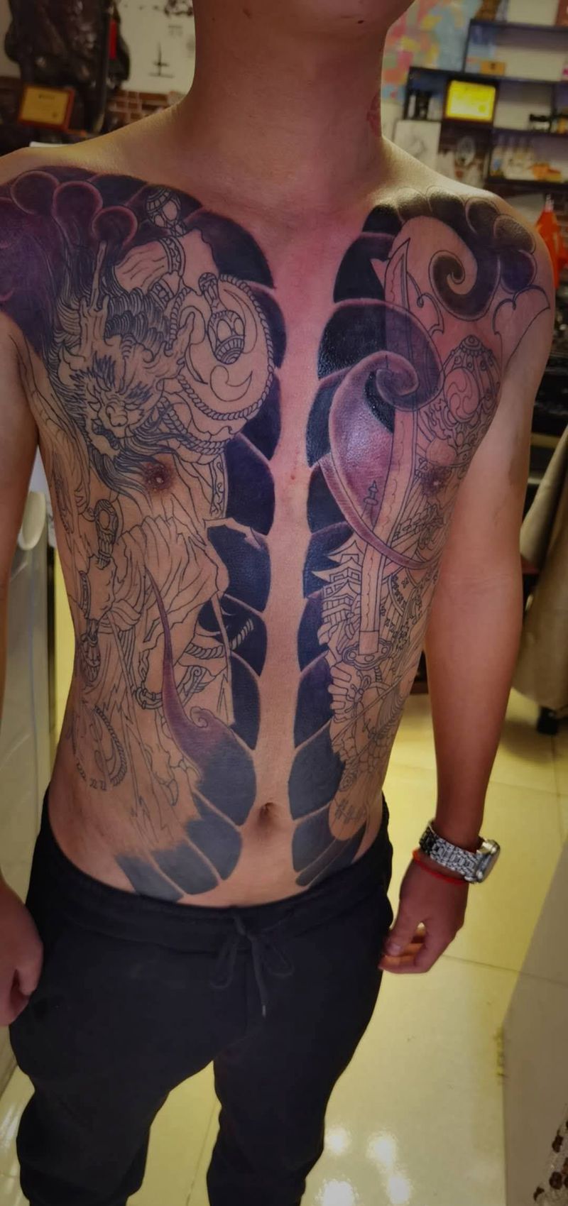 黑灰满背纹身图案