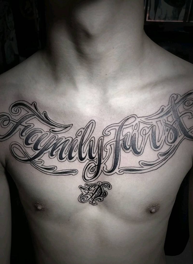 当前位置: 首页 >贵州省黔西南布依族苗族自治州纹身店-老艺人刺青纹身图案>花体字纹身图片_胸部花体字纹身图案